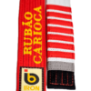 It will be embroidered on the same side as the name, ensuring it faces forward when the belt is tied in the standard knot position.